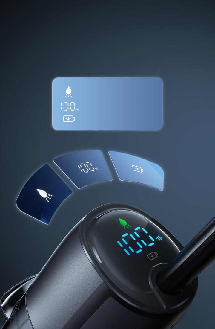 Следите за состоянием устройства в реальном времени: уровень заряда, распыление воды, уведомления о неисправностях и процесс зарядки — всё на одном экране.