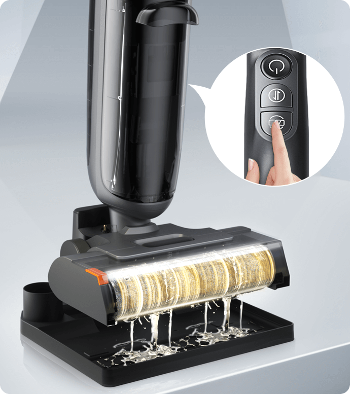 Запустите быструю самоочистку одним нажатием кнопки — устройство удаляет грязь, волосы и налёт с ролика и трубок без вашего участия. После завершения просто опорожните бак для грязной воды, чтобы избежать неприятных запахов.