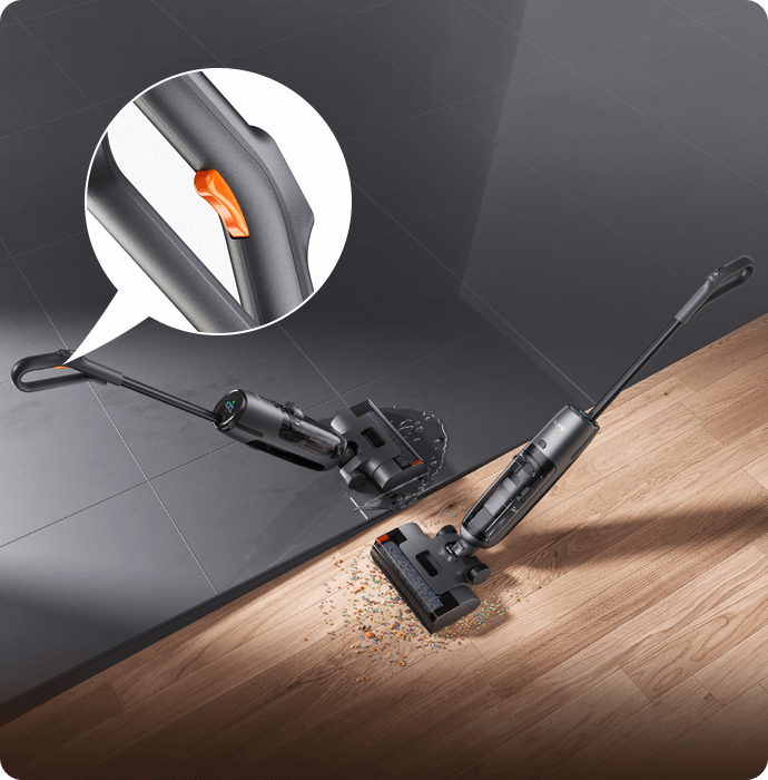 Одним нажатием регулируйте подачу воды — легко переходите от сухой уборки к влажной, эффективно справляясь с любыми типами загрязнений.
