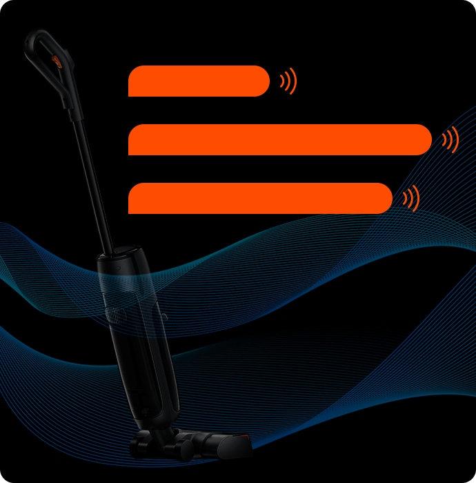 Система голосовых оповещений сообщает о включении, зарядке, низком уровне воды, заполнении бака или блокировке щётки — для полностью беспроблемной работы.
