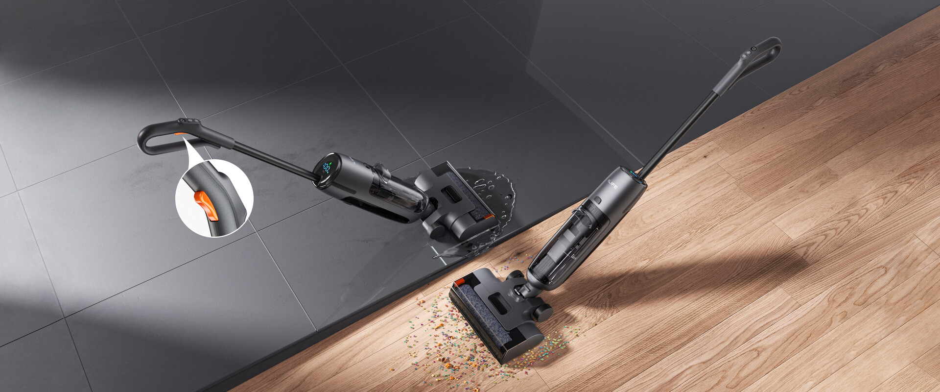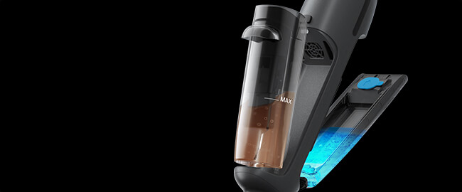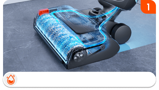 Одним нажатием регулируйте подачу воды — легко переходите от сухой уборки к влажной, эффективно справляясь с любыми типами загрязнений.