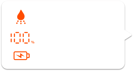 Следите за состоянием устройства в реальном времени: уровень заряда, распыление воды, уведомления о неисправностях и процесс зарядки — всё на одном экране.
